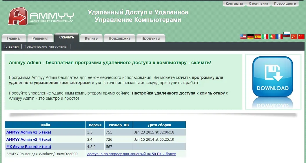| Версия Ammyy Admin | ОС | Язык | Размер | Тип файла | Загрузка |